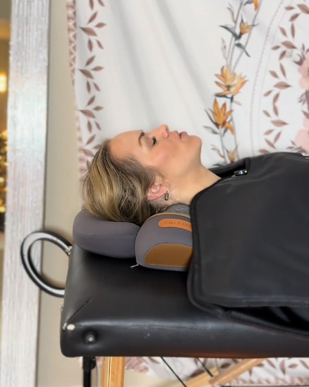 Soothing therapy relaxes the neck and spine for deep restorative sleep.